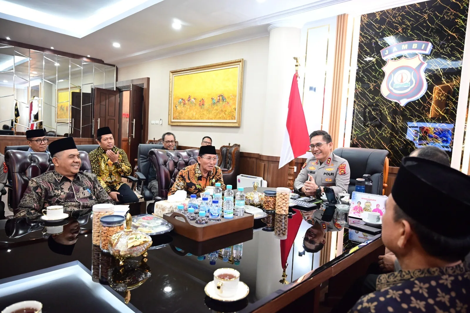 Sementara itu, Kabid Humas Polda Jambi Kombes Pol. Erlan Munaji menyebutkan bahwa pertemuan ini menjadi momentum penting untuk mempererat kerja sama antara kepolisian dan ulama dalam menjaga stabilitas keamanan serta memperkuat nilai-nilai keagamaan yang moderat di Provinsi Jambi. (Ans)