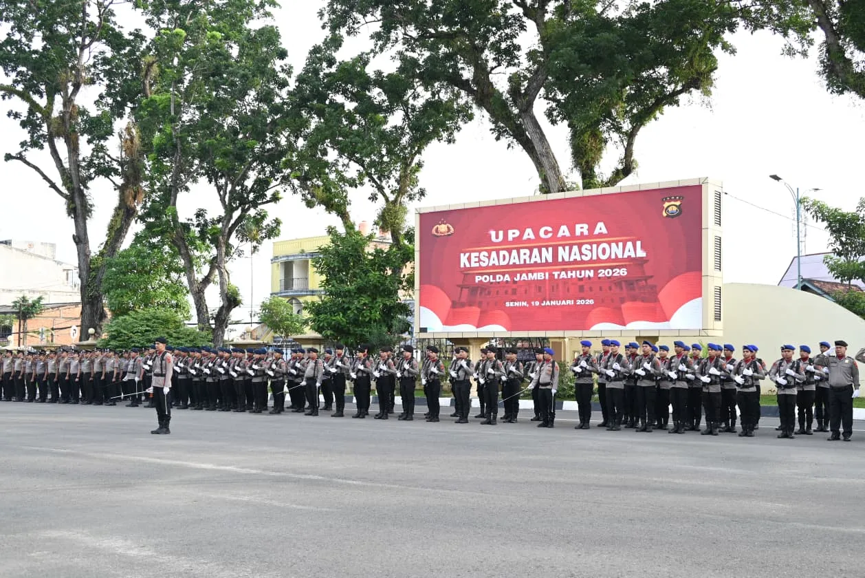 U2.com – Kepolisian Daerah (Polda) Jambi menggelar Upacara Kesadaran Nasional Tahun 2026 pada Senin (19/1/2026) di Lapangan Mapolda Jambi. Kegiatan ini bertujuan menumbuhkan semangat nasionalisme, kedisiplinan, serta meningkatkan profesionalisme personel Polri.